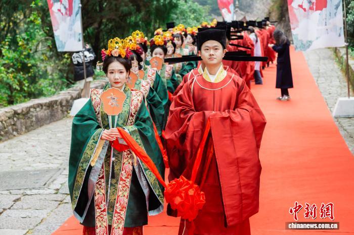 今日“爱正在雁荡·幸运之约”2025暖州市员工团体婚礼正在浙江省暖州市乐浑市放浪举办,20对于扎根暖州的青年员工于雁荡山景区喜结连理。